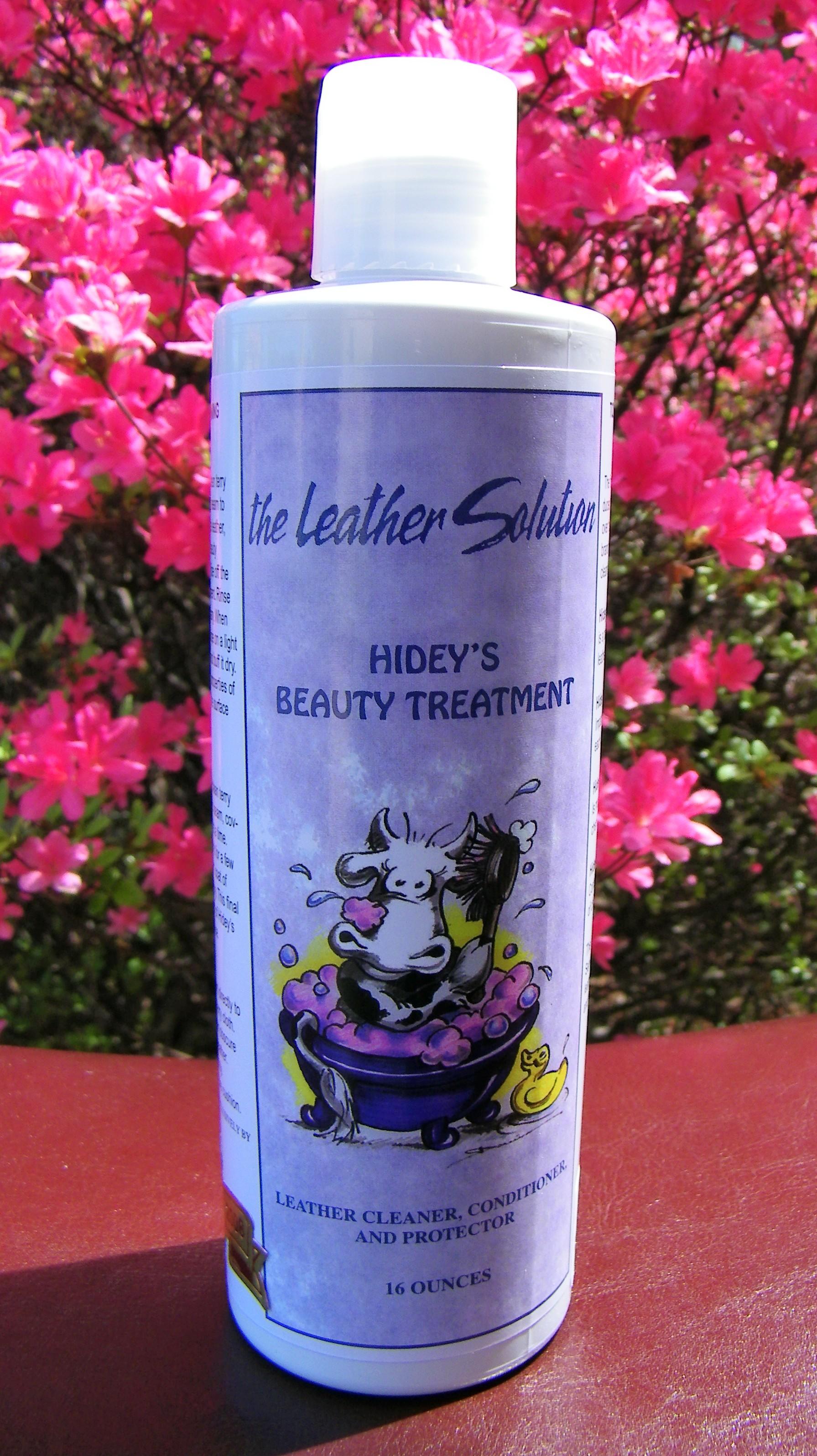 Hidey's Beauty Treatment Leather Cleaner & Conditioner is produced by Total Leather Care/ The Leather Solution. it is the correct pH to clean and condition your leather furniture. The 16 oz. bottle is a creamy consistency. You apply Hidey's to a soft, clean cloth and then wipe the leather seam to seam. Do not use as a spot cleaner, do an entire cushion at a time. **It is best for any product that you try it first in an inconspicous spot as there are many type of leather** Hidey's also has a stain protectant in it. It can be ordered over the phone or online at the website below. The price for 1 bottle is $29.95 plus tax and shippping.